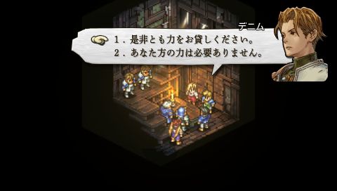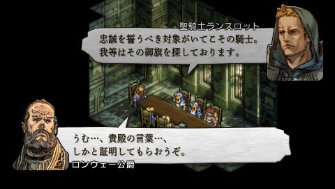 現れたランスロットは同名の別人でした。 この異国の戦士たちに非礼を詫びるデニムとカチュアですが、 復讐を果たせなかったヴァイスはその昂った感情が抑えられません。