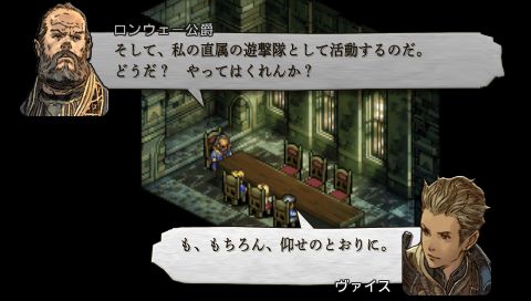 救出したロンウェー公爵と対面。 聖騎士ランスロットたちはウォルスタ解放軍の傭兵となった。