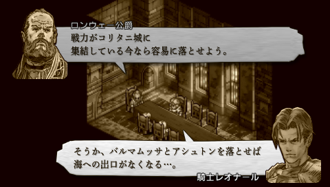ここで回想シーン。 公爵はこのバルマムッサに英雄が○×※して、 港町の△÷□で、 経済封鎖が※◇%になって、 …要するにガルガスタンの戦力を二分させる壮大な作戦を考案していたのでした。 策士です。