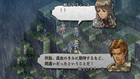 ─というのも、 バルマムッサのあの夜、 ラヴィニスは自身が純粋なウォルスタ人ではなく、 ガルガスタンとの混血であるという事実を、 レオナールによって初めて知らされたのでした。