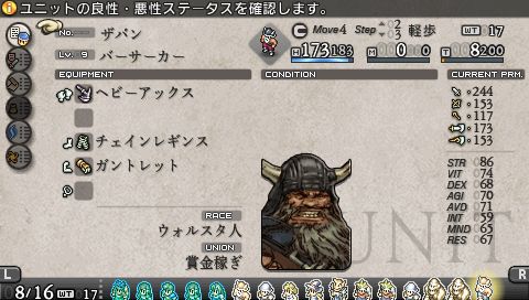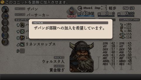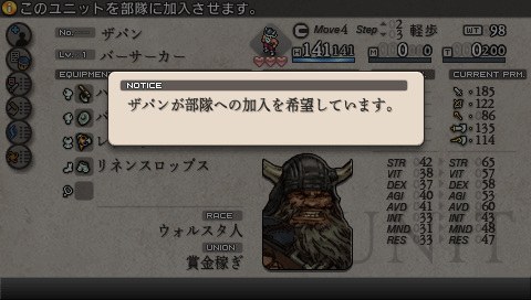 兄を殺したバルマムッサの虐殺犯を探していたという敵・アロセール。 ステータスのユニオンは 「ネオ・ウォルスタ解放同盟」 であり、 ガルガスタン軍ではありません。 敵は全員ウォルスタ人です。