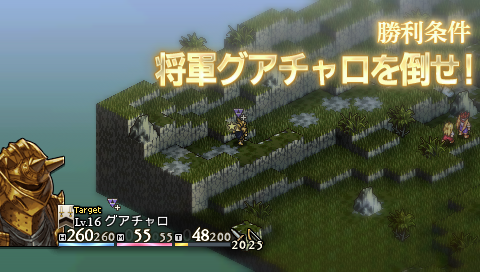 ウィノアが倒されると激昂したグアチャロが転進して騎士団に襲いかかります。 この瞬間から勝利条件が 「将軍グアチャロを倒せ!」 に。