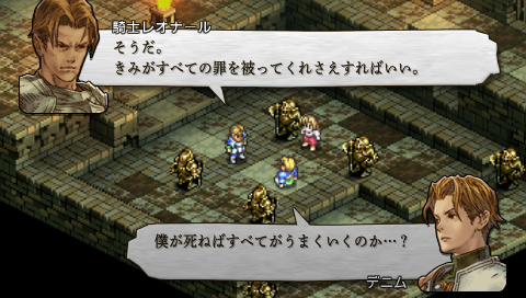 レオナールの真の目的は、 死にゆく自分にすべての罪をかぶせ、 これからヴァレリアを導く存在となるデニムの身を潔白にすることでした。 ここで自身を倒させたのはその覚悟を確かなものにさせるため。 全ては “皆が平等に生きる権利を実現する” ためであり、 またそれをデニムに託すためなのでした。