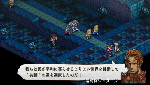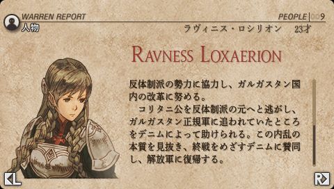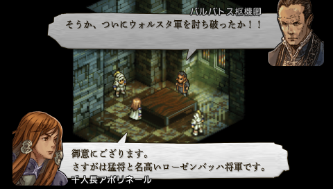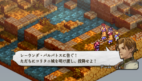 ガルガスタンの改革を目指し、 反枢機卿派の将として戦っているラヴィニスと再開したデニム。 ガルガスタンの内情と、 互いが同じ目標に向かい進んでいることを知ったデニムは、 過去を乗り越え共に進む事を願い出る。