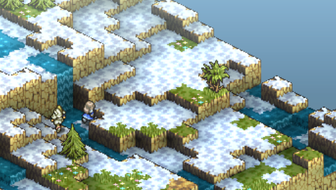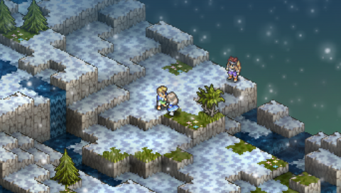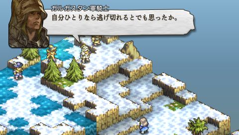 雪原を急ぐガルガスタンの騎士と、 もう一人はラヴィニス。 2人は追われている様子。