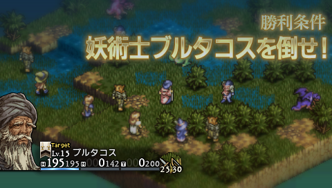 ザエボスの命令でデニムを迎撃する秘色のブルタコス。 ドラゴン3、 リザードマン2、 オーク3と特殊兵力を操ります。