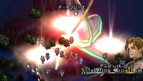 古都ライムに奇襲をかけたデニムたちは、 ひとりの剣士が暗黒騎士率いるバクラム軍に追われている場面に遭遇する。