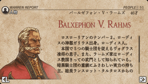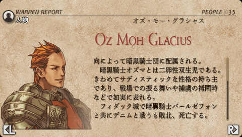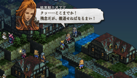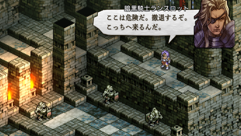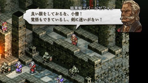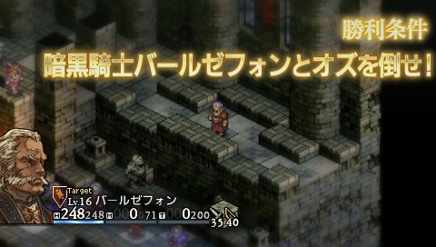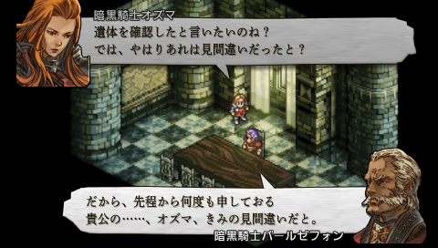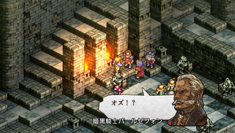 退却を始める暗黒騎士ランスロットを追うデニムたちの前に、 暗黒騎士バールゼフォンとオズが立ちふさがる。