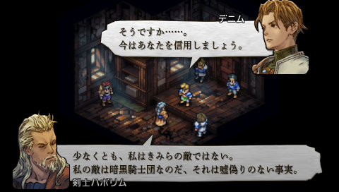 古都ライムに駐留するバクラム軍との戦いの中、 盲目の剣客・ハボリムと出会ったデニム。 暗黒騎士団に恨みを持つハボリムは、 解放軍への参加の意思を表す。 それをデニムは快く迎えた。