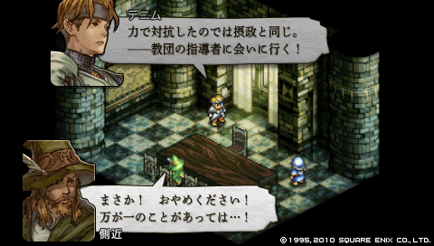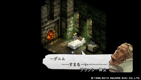 まずデニムの父・プランシーは生きており、 このブリガンテス城で保護されているとのこと。 急いで駆けつけるデニムですが、 衰弱したプランシーは遺言を残してこの世を去ります。