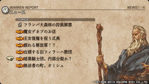 すでに島の半分以上を治めるに至った解放軍指導者・デニムが、 部下から報告を受けた際のねぎらいの言葉がこれ。 わずか133日でずいぶん偉くなりました。 顔グラフィックも変わったしね♡