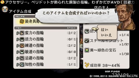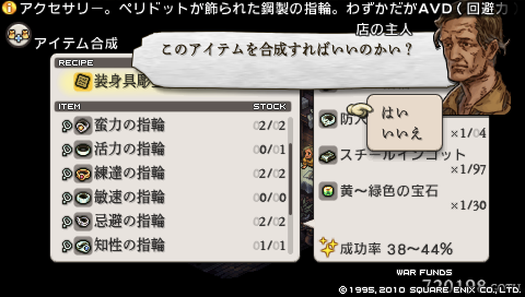 これらの指輪はいずれ敵が装備品としてドロップするそうですが、 少しでも早く使いたいので合成しちゃいます。