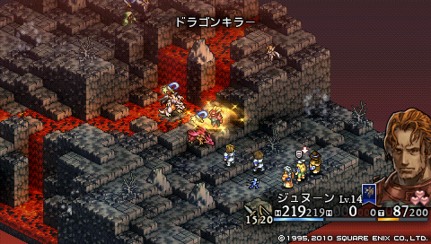 先日とは異なるマップのウェオブリ山のエキストラバトル。 ダークドラゴンのいるブロックは、 一度入ると高低さの関係で抜け出せなくなる落とし穴です。