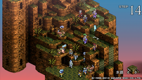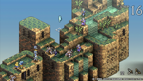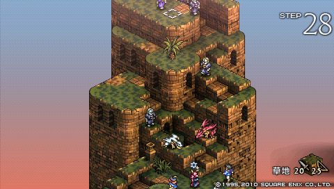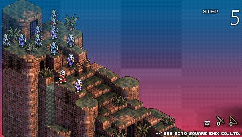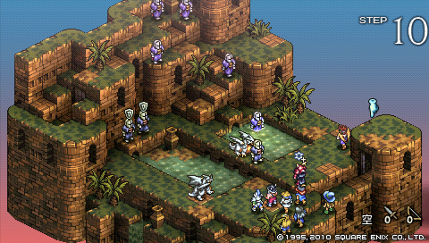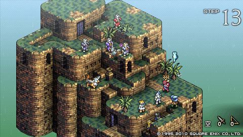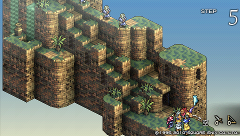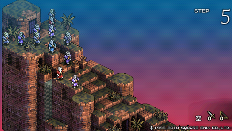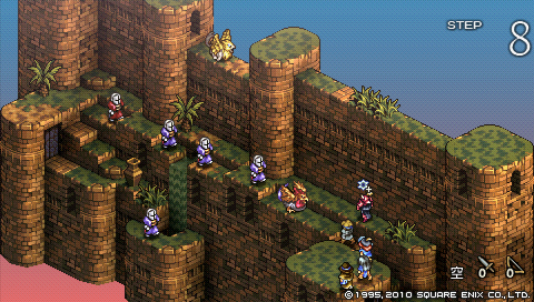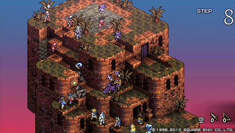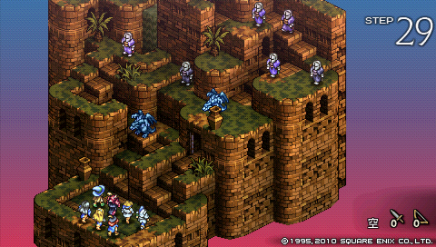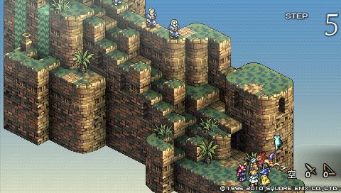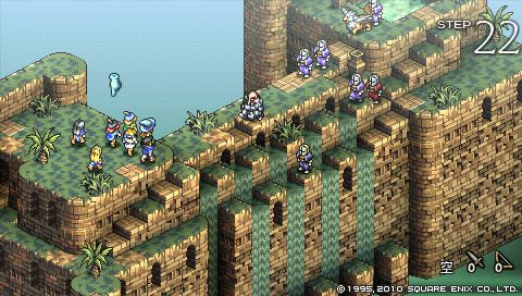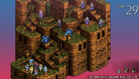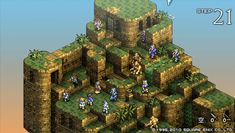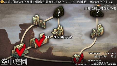 暗黒騎士団が撤退する先に選んだ “空中庭園” 。 ─とはいっても空中に浮遊しているわけではなく、 実際は地表に建造された塔であることが背景の映像からわかります。 手前に見える岩のことではありません。 遠くにうっすらと見える多層構造物の方です。