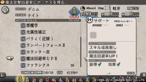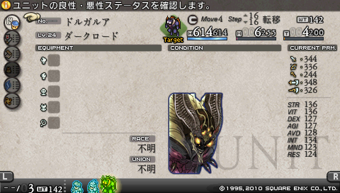 すなわちナイト以外が出撃するとおよそ死にます。 出撃するメンバー全員をナイトにクラスチェンジするという戦法はあまりに節操ないので、 現職のナイトであるデニムとヴォルテールだけを出撃させることにしました。