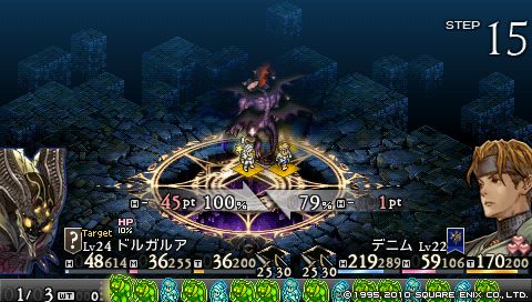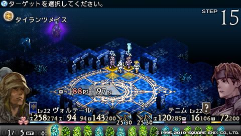 分身と戦う上での注意点は各個撃破を徹底すること。 デニムとヴォルテールは恋人のごとくピッタリ寄り添わせ、 目標を定めて一点集中砲火です。