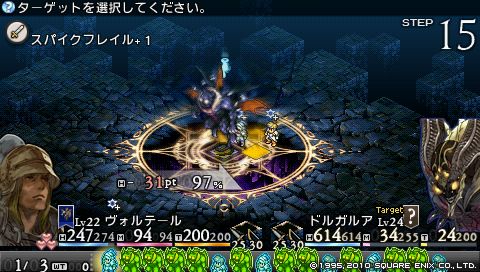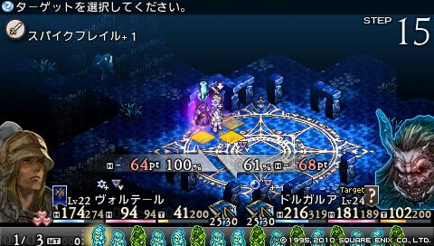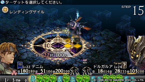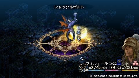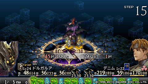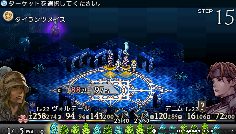 ちなみにレベル22のデニムの片手剣で与えられるダメージはわずか1。 攻撃はヴォルテールに任せて、 デニムは回復と補助に専念することにしました。