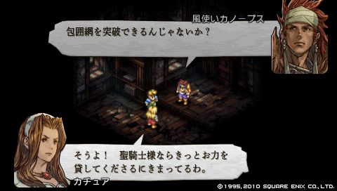 ロンウェー公爵の流した情報によって虐殺の濡れ衣を着せされ、 賞金首にされてしまったデニム。 逃亡生活を強いられていましたが、 この状況を打開するため、 カノープスの提案に従い包囲網を突破してタインマウスの丘へ向かうことになりました。