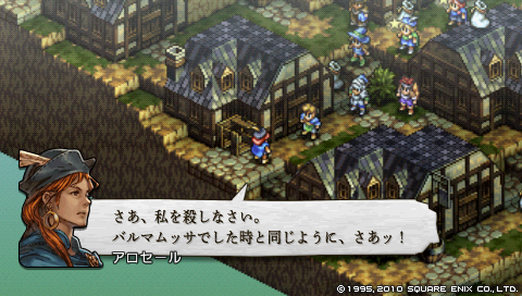 デニムが虐殺犯であると固く信じて疑わないアロセールでしたが、 彼女を救わんとするデニムの姿と、 プレザンスの必死の訴えにその心が揺らぎ始めます。