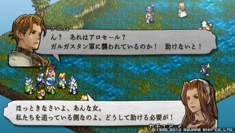 戦闘終了後、 信じていたものを見失ったアロセールは戦意を喪失し、 投降してきますが、 デニムはその身を捕虜とはせず、 身の潔白が証明されるまで同行させることにしました。