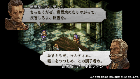 人心がすでにガルガスタン軍から離れてしまっていることを、 捕虜が去り際につぶやいたこのセリフが象徴しているようです。