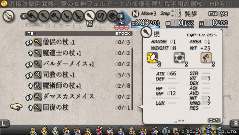 味方のレベルに追随する形で敵のレベルも25に到達。 見たことのない武具の装備が目立つようになりました。 このステージでは 「回復の杖」 を拾得。