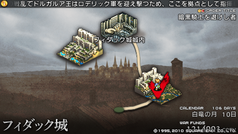 白鷺城こと姫路城、 ではない、 白鳥城ことフィダック城、 この優美な巨大建造物はその南側もまた美しいのであります。 バクラム領の最南端にあるこの城を落とし、 続く侵攻作戦の橋頭堡に。