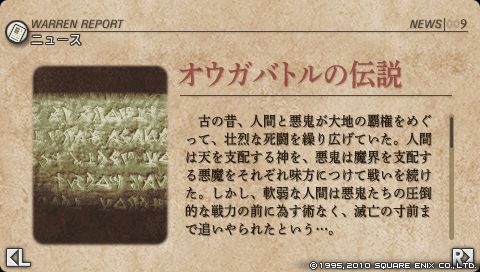 このタイミングでウォーレンレポートに追加される 「オウガバトルの伝説」 の項。 プロパガンダだテロリストだなどと難しい政治の話ばかりのこの世界で突然現れたおとぎ話です。